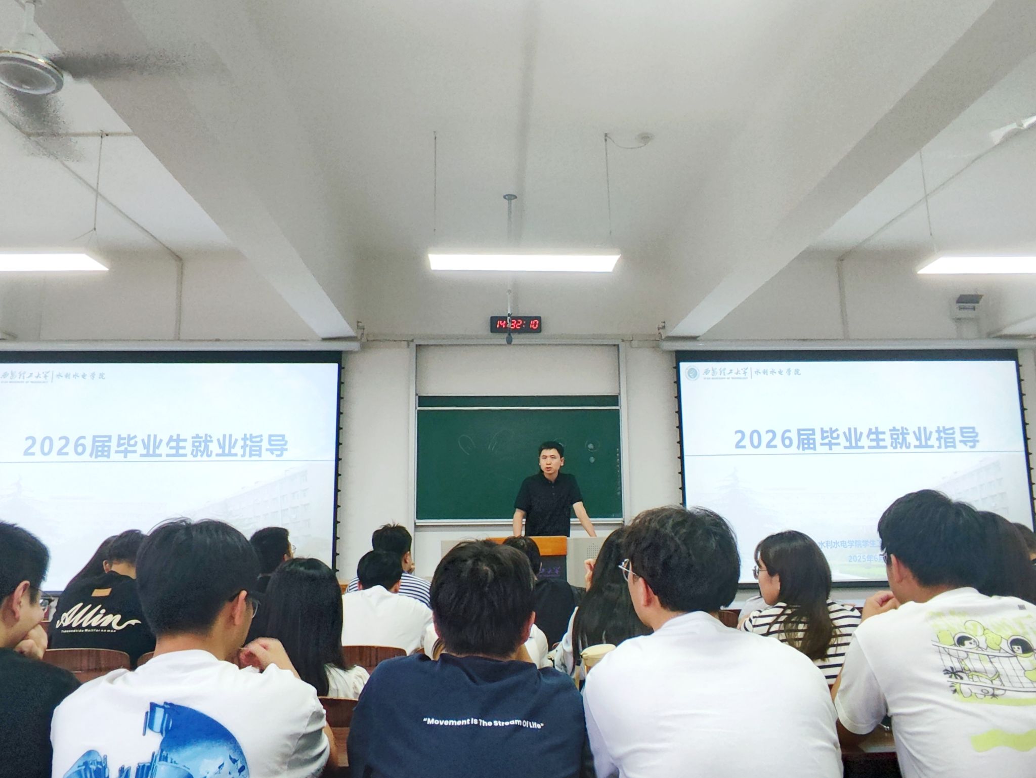 2025届毕业生代表结合各自的求职与考研经历,分享了自己的经验与心得。考取华北电力大学研究生的水文211班马西瑜围绕考研前期准备、各科复习策略及心态调整等方面进行了细致讲解;水文212班侯昊宁从自身应聘陕西一三九煤田地质水文地质有限公司的经历出发,介绍了就业目标规划、简历撰写、简历投递、笔试面试等完整的求职流程;考取本校研究生的农水211班赵宇辰细致讲解了英语、数学、专业课、政治四门科目的复习重点和方法;农水212班陈仪驹通过自身应聘新疆兵团勘测设计院集团股份有限公司的经验,从简历准备、就业单位选择、求职过程和就业心态等方面的注意事项。