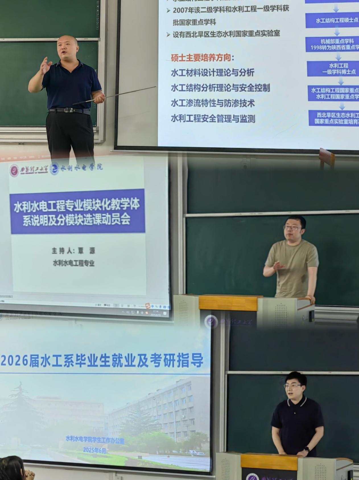 为精准赋能2026届毕业生把握升学与就业关键机遇,6月19日,我院水利水电工程系举办2026届毕业生就业与考研指导动员大会。系主任覃源老师、副主任宋锦焘老师及水工系全体2026届本科毕业生参会。会议由2026届辅导员梁骥超老师主持。