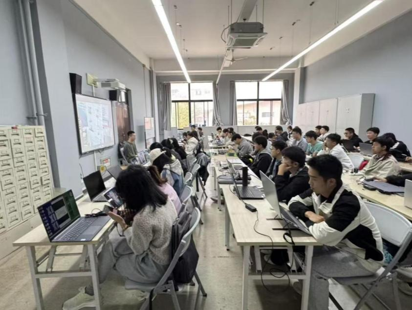 在软件培训环节,蒋睿坤同学由浅入深展开讲解。他从AutoCAD的绘图环境与界面布局入手,详细剖析了标题栏、菜单栏、绘图区等核心功能区,引导同学们高效定制个性化工作空间。并通过直线、圆、矩形等基础图形的绘制与编辑案例,呈现了软件操作从入门到实践的应用闭环,有效提升了大家的专业绘图能力。