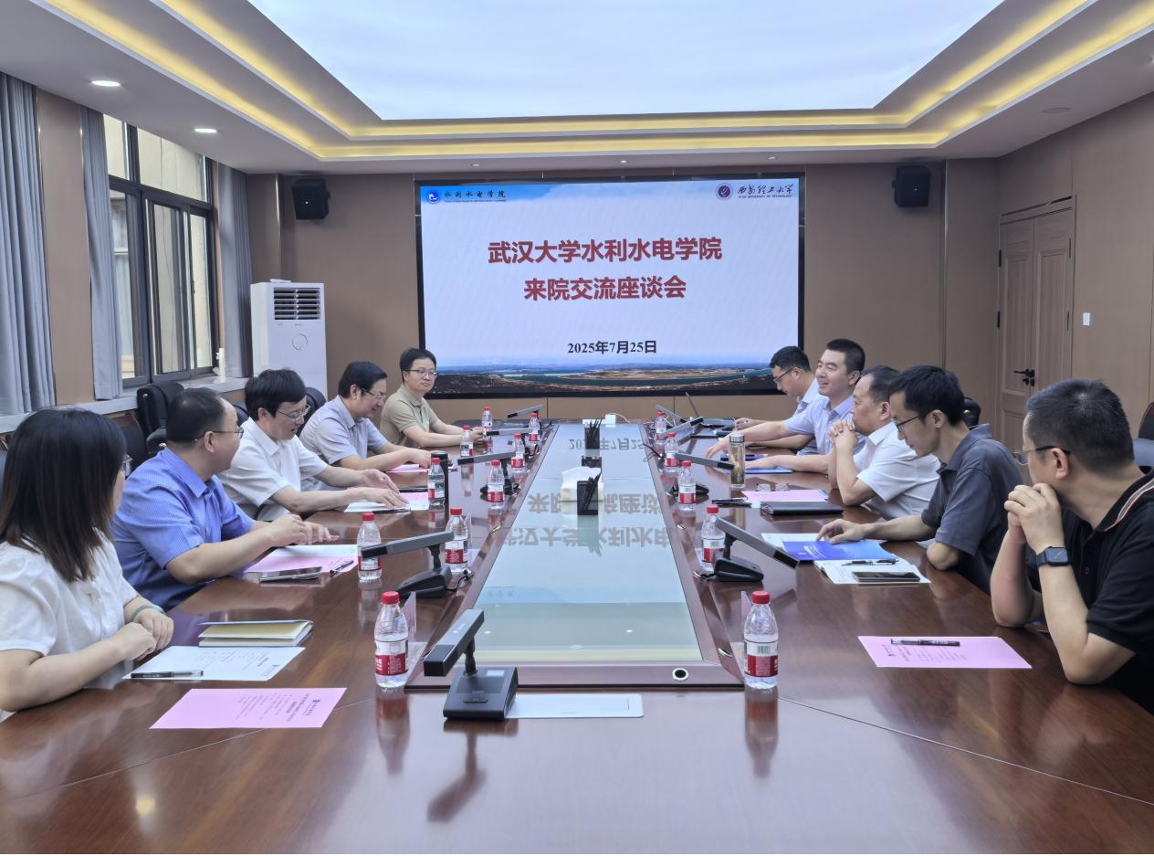 7月25日,武汉大学yl23455永利集团党委书记、水资源工程与调度全国重点实验室主任李典庆,院长刘攀等一行来我院调研交流。yl23455永利集团党委书记王瑞生、院长李炎隆、副院长郭梦京等参加座谈。