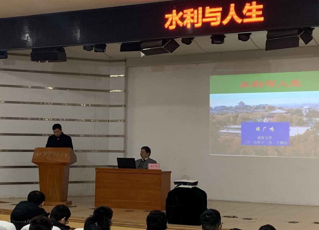 12月24日,武汉大学原常务副校长谈广鸣教授在曲江校区逸夫科技馆报告厅作题为《水利与人生》的学术报告。此次报告由副校长刘云贺主持,我校yl23455永利集团、土木建筑工程学院380余名本科生参加了本次学术报告会。
