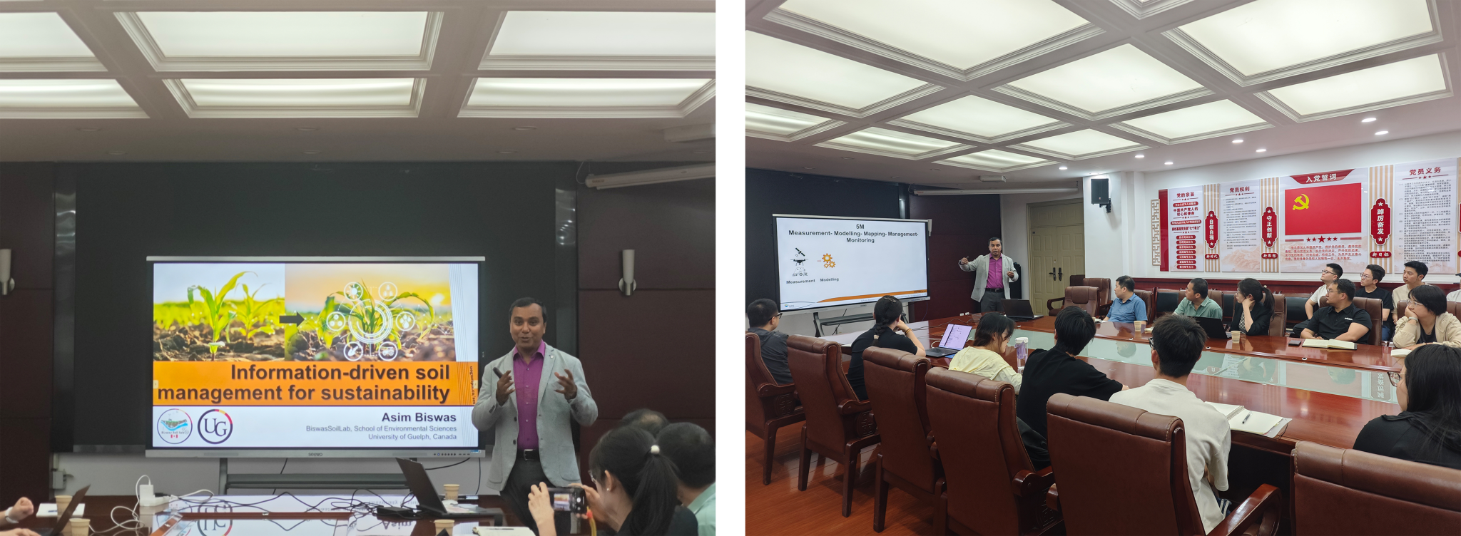 Asim Biswas教授以全球粮食需求不断增长和环境挑战日益严峻为背景,深入阐述了现代农业中土壤管理的重要措施,重点强调了可持续土壤管理在保障粮食安全和维护生态系统平衡中的核心作用。Biswas教授指出,传统的土壤研究方法往往面临耗时长、劳动强度大、成本高等问题。然而,随着传感器技术、数字化工具以及人工智能(AI)的迅猛发展,土壤管理正迎来前所未有的技术变革。报告中,Biswas教授系统介绍了用于高效测量土壤属性的前沿替代方案,重点展示了数字工具和人工智能技术在生成综合土壤信息、提升土壤监测效率方面的突破性进展。他进一步展示了相关技术在重塑可持续土壤管理方面的成功应用。报告还概述了先进的土壤传感技术(包括近距离和遥感手段)的最新研究成果,并展示了如何通过高分辨率的时空数据采集方式,更深入地理解土壤特性与演化过程。