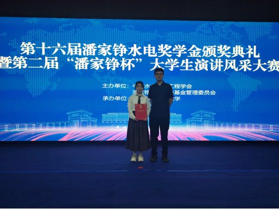5月29日,第十六届潘家铮水电奖学金颁奖典礼暨第二届“潘家铮杯”大学生演讲风采大赛在华北水利水电大学隆重举行。yl23455永利集团院长李炎隆,辅导员李昌镐及获奖学生参加此次盛会。