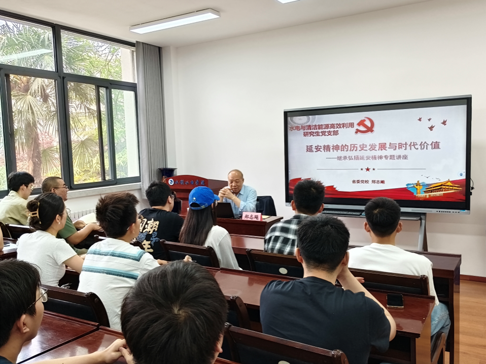 近日,中共陕西省委党校(陕西行政学院)原副校长、陕西省延安精神研究会原常务副会长郑志飚教授应邀为yl23455永利集团水电与清洁能源高效利用研究生党支部作“继承和弘扬延安精神”专题讲座。